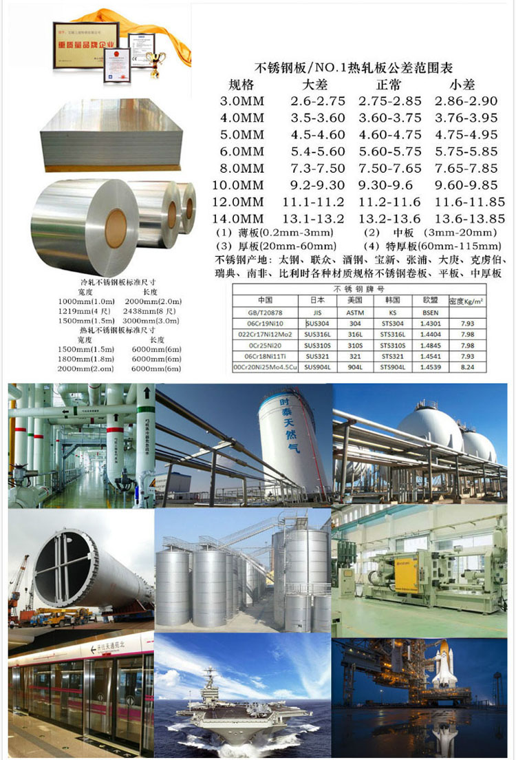 304/****板 理論厚度:3.0-100 標準尺寸:1250*6000 1500*6000
