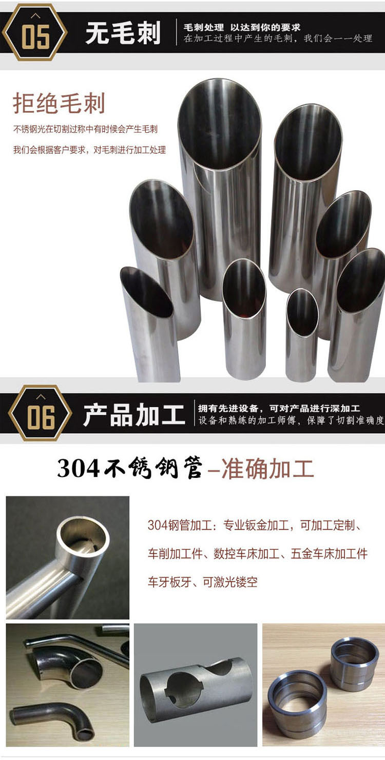 304薄壁不銹鋼管是除了圓管以外的其他截面形狀的鋼管的總稱, 有焊接異型管和無縫異型管。 因為材質的關系,不銹鋼異型管一般為304以上材質為多,200、201材質硬度強風,成型難度加大。